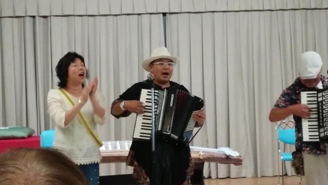 露の都師匠の落語を中心にスマイルジャネットのアコーディオン歌謡ショー、奈良雅楽会の尺八と琴の演奏